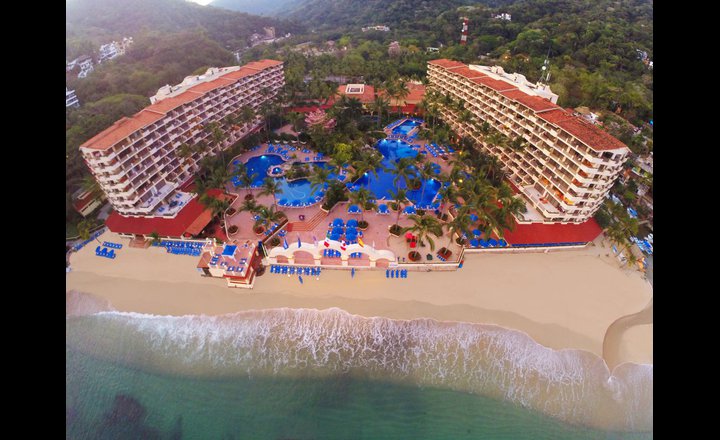 Descripción:Barceló Puerto Vallarta es un hotel todo incluido ubicado en la famosa BahÃa de Mismaloya, al sur de Puerto Vallarta, rodeada de vegetación y que ha sido lugar de filmación de numerosas pelÃculas de Hollywood, incluyendo La Noche de la Iguana en 1964, que dio a conocer el destino a nivel mundial. En tu próxima visita a Puerto Vallarta puedes recorrer las cascadas de los alrededores, dar un paseo en velero y durante el invierno, el avistamiento de ballenas será una experiencia inolvidable. El aeropuerto internacional de Puerto Vallarta (PVR) está a 26 kilómetros de distancia. Barceló Puerto Vallarta cuenta con 316 suites equipadas con aire acondicionado, balcón o terraza, televisión de pantalla plana, caja de seguridad, teléfono y baño privado con regadera. Las habitaciones Club Premium cuentan con minibar VIP, área exclusiva de registro, servicio a la habitación sin cargo, internet inalámbrico gratuito en el salón privado y reservaciones ilimitadas en los restaurantes de especialidades. Barceló Puerto Vallarta ofrece club de niños, spa, gimnasio, tina de hidromasaje solo para adultos, cuatro albercas y centro de negocios. Además, cuenta con varios salones de eventos con capacidad para hasta 600 invitados. En Barceló Puerto Vallarta podrás elegir entre cinco restaurantes, además de disfrutar de espectáculos nocturnos a cargo del equipo de entretenimiento del hotel.