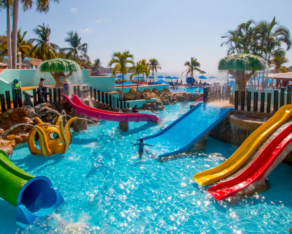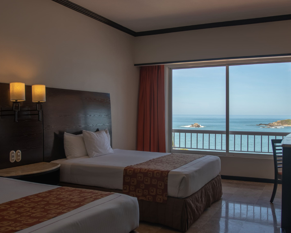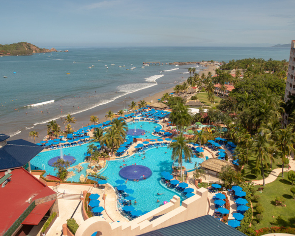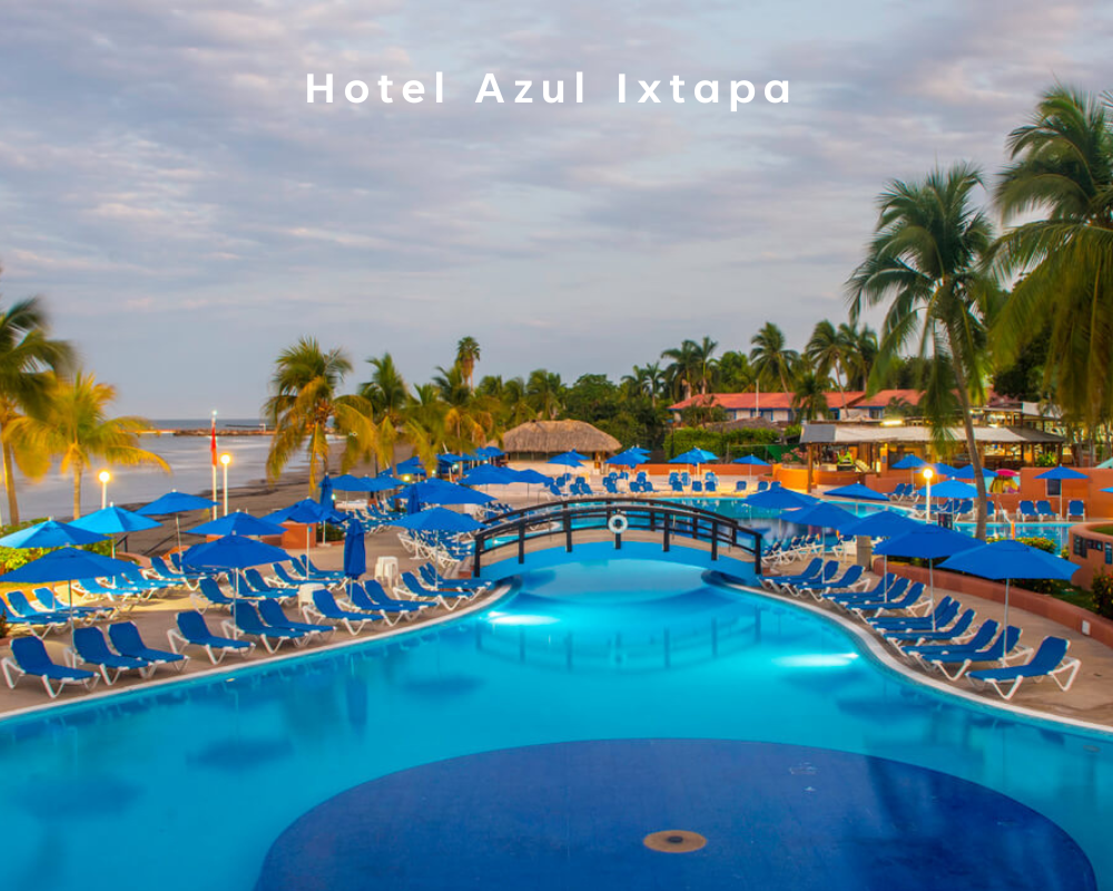 Descripción:Este complejo hotelero en Ixtapa cuenta con 400 habitaciones equipadas con aire acondicionado, caja de seguridad, televisión con canales por cable y acceso a internet. Las suites cuentan además con dos televisiones de pantalla plana, área de descanso, mesa de trabajo, minibar y baño privado con tina, regadera y amenidades. Todas las habitaciones y suites tienen vista al mar. El hotel cuenta con habitaciones especialmente acondicionadas para personas con discapacidades (previa solicitud). El hotel Azul Ixtapa All Inclusive Beach Resort & Convention Center tiene una amplia oferta gastrómica en los siete restaurantes con los que cuenta. La propiedad tiene cuatro bares, uno de ellos con música en vivo en temporada alta o un DJ todas las noches, asà como un club nocturno (sujeto a disponibilidad y cambios de clima). Azul Ixtapa ofrece actividades temáticas, los pequeños también podrán disfrutar de alimentos preparados especialmente para ellos. El complejo tiene un parque acuático con pequeños toboganes y fuentes. Para los adultos el hotel tiene un gimnasio en el que diariamente ofrecen clases de spinning, yoga, tae bo, baile y zumba. Para los amantes de los deportes el hotel cuenta con dos canchas de tenis, golfito, tres albercas y cuatro jacuzzis. El hotel tiene un centro de convenciones con una capacidad de 2,400 personas.