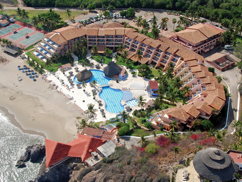 Descripción:Los Ãngeles Locos de Tenacatita es un hotel todo incluido que se encuentra en Costalegre, Jalisco, frente a una de las playas de la BahÃa de Tenacatita. El hotel está ubicado a 57 kilómetros del Aeropuerto Internacional Playa de Oro (ZLO) en Manzanillo y a 30 kilómetros de Barra de Navidad. Este hotel todo incluido tiene 204 habitaciones, de las cuales 12 son junior suites. Las habitaciones incluyen televisión con canales por cable, teléfono, aire acondicionado y balcón con vista parcial al mar. Adicionalmente, las junior suites en los Los Ãngeles Locos de Tenacatita cuentan con área de descanso con dos sofás cama, baño privado con tina y una terraza con vista completa al mar. En el hotel Los Ãngeles Locos hay una amplia variedad de actividades para todas las edades. El hotel Los Ãngeles Locos de Tenacatita ofrece deportes terrestres y acuáticos, billar, alberca al aire libre y una extensa playa. El hotel Los Angeles Locos en Costalegre dispone de cuatro restaurantes, uno que sirve bufet de comida internacional, dos de especialidades internacionales y una pizzerÃa, asà como tres bares y un club nocturno. Asimismo, en los salones de eventos del hotel Los Ãngeles Locos de Tenacatita se pueden organizar conferencias de negocios o ceremonias especiales, donde se pueden reunir hasta 550 personas.