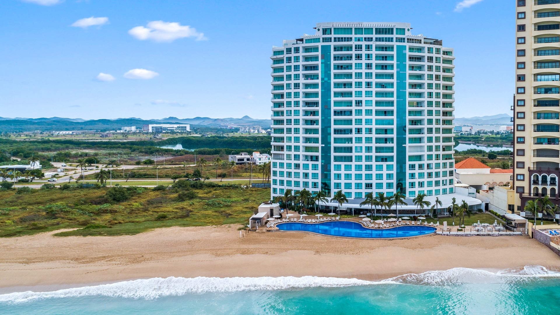 Descripción:Este hotel de lujo con fachada curva se encuentra junto a una playa de Mazatl