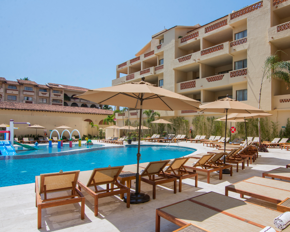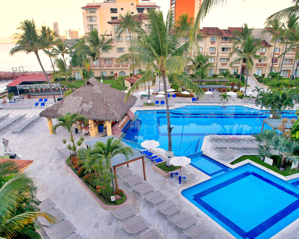 Descripción:Canto del Sol Plaza Vallarta es un hotel todo incluido ubicado en la parte norte de la Zona Hotelera de Puerto Vallarta. En los alrededores podrás encontrar varios centros comerciales y a 1.5 kilómetros del hotel está el Malecón. En tu próxima visita a Puerto Vallarta puedes visitar Yelapa y Majahuitas, tranquilas playas para descanso al sur de la ciudad. El aeropuerto internacional de Puerto Vallarta (PVR) está a cuatro kilómetros de distancia. Canto del Sol Plaza Vallarta cuenta con 265 habitaciones equipadas con aire acondicionado, caja de seguridad, secadora de cabello, teléfono, televisión de pantalla plana y baño privado con regadera. En Canto del Sol Plaza Vallarta cuenta con tres restaurantes y tres bares. Este hotel ofrece club de niños, alberca, estacionamiento y salones de eventos con capacidad para hasta 500 invitados. Además, los huéspedes del hotel tienen derecho a una hora diaria de juego en el club de tenis, con ocho canchas iluminadas, la mitad de superficie dura y techada, y las restantes cuatro de arcilla y al aire libre.